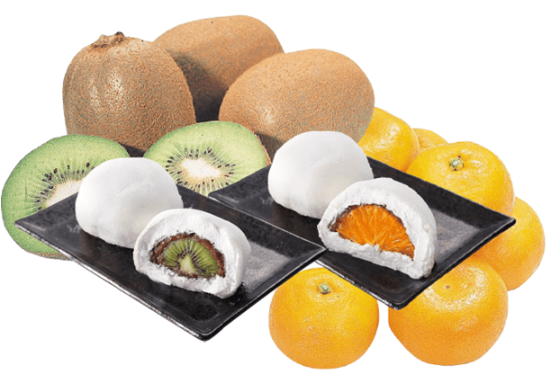 新鮮なフルーツに自然な甘さの粒あん・生クリームを乗せふわもち食感のおもちで包んだフルーツ大福。映えること間違いなし!