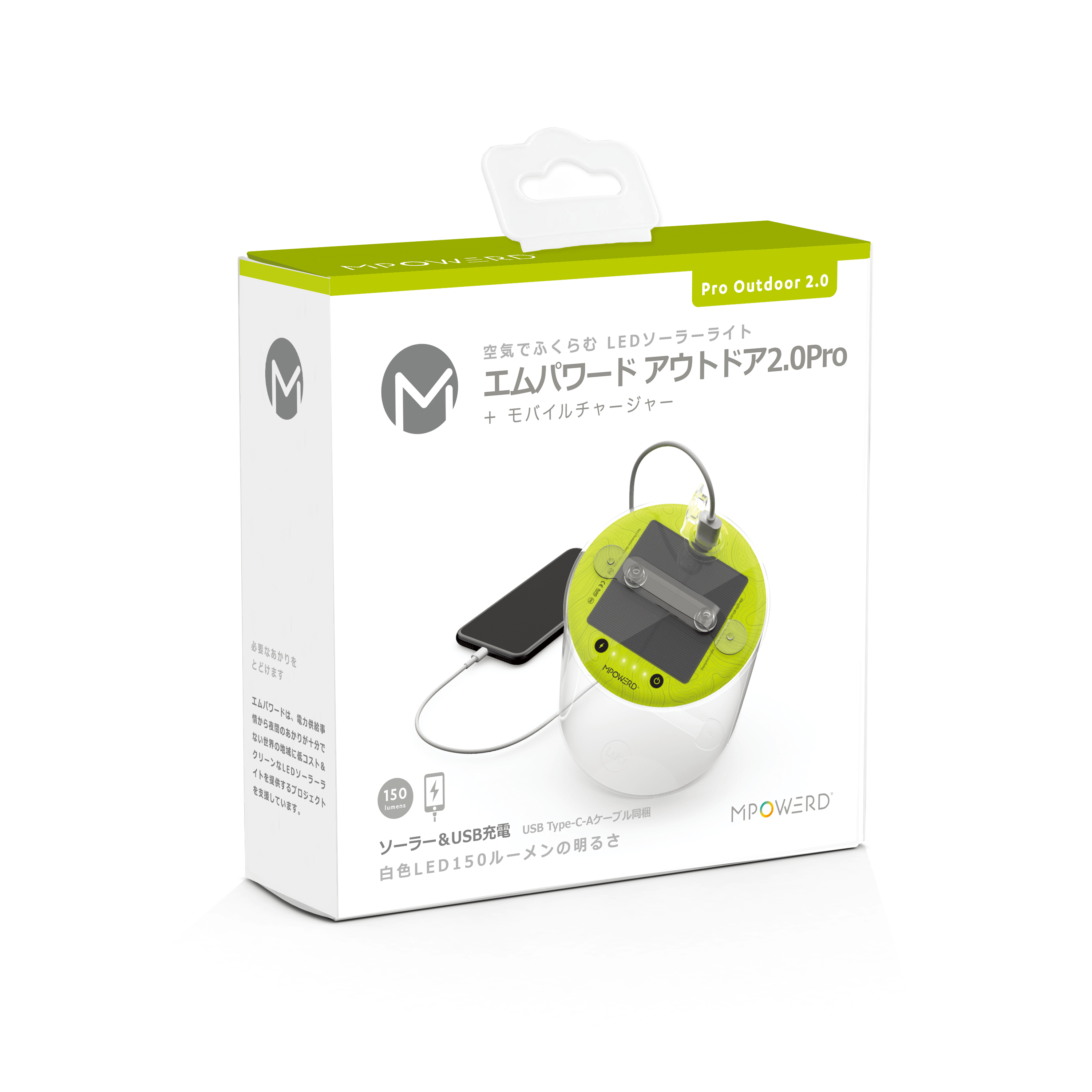 空気で膨らむソーラーランタン「エムパワード」の 大人気モデル「エムパワード アウトドア2.0Pro」に USB typeCコネクタが追加、12月1日発売