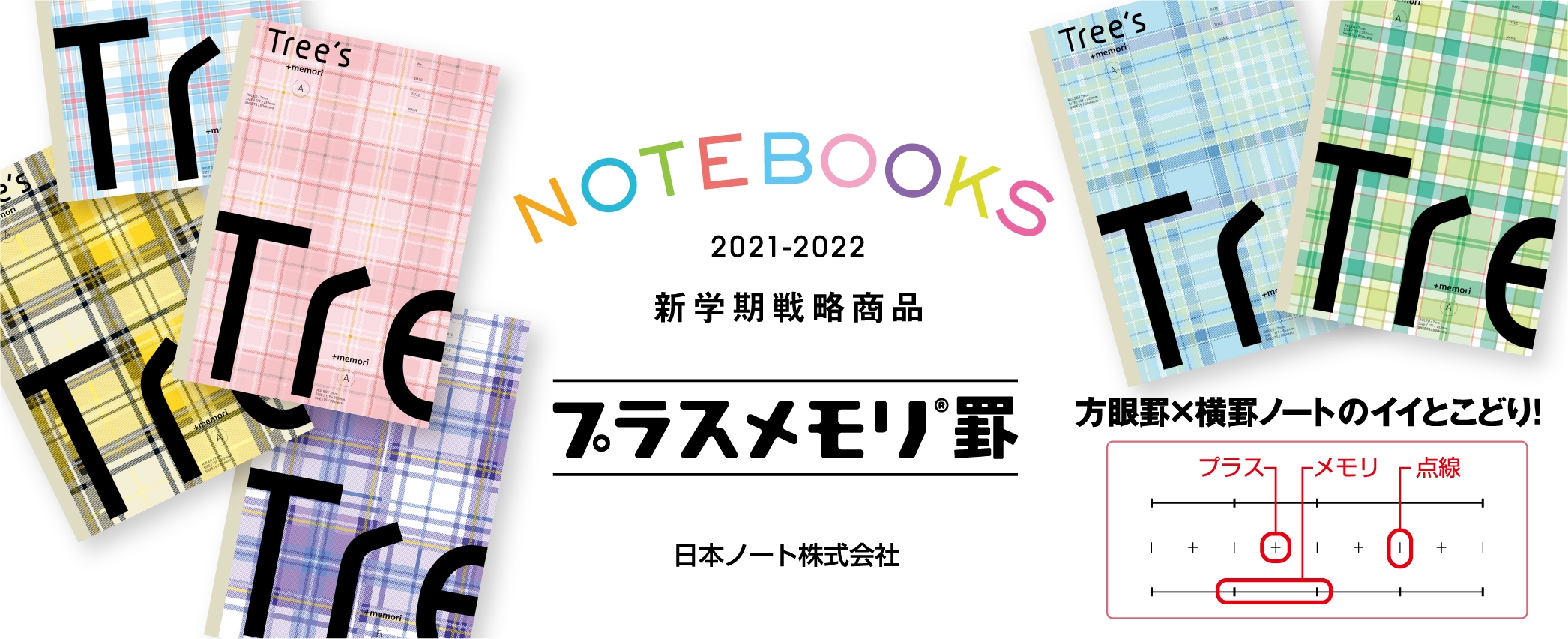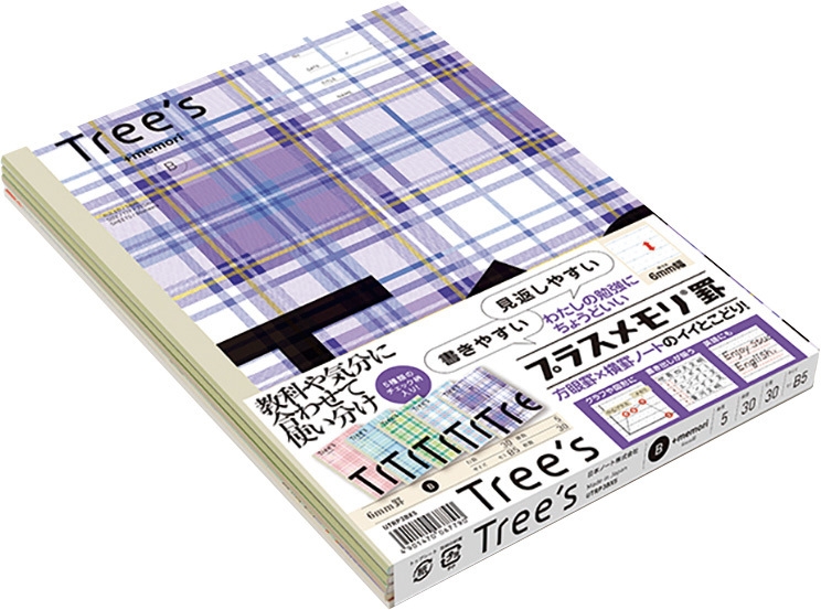 この度、スタンダードノートのブランド「Tree's」“プラスメモリ罫”より『チェック柄パックノート』を2021年11月30日より順次発売いたします。