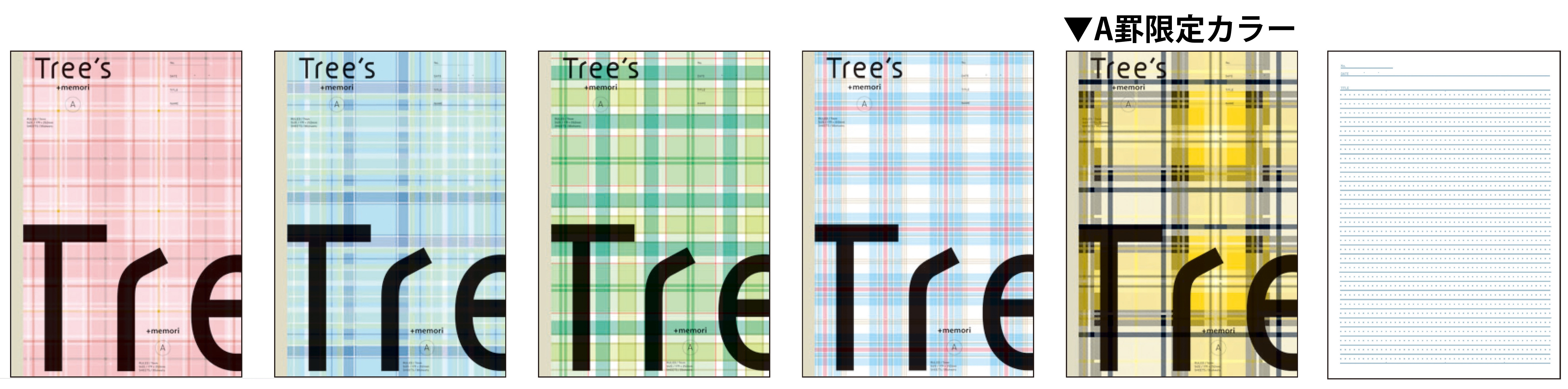 モチベーションアップにつながるチェック柄のデザインと、Tree'sブランドの特徴である“自分らしく選べる”カラーバリエーションをかけ合わせたデザインです。教科分けや気分での使い分けに便利な5冊パックです。