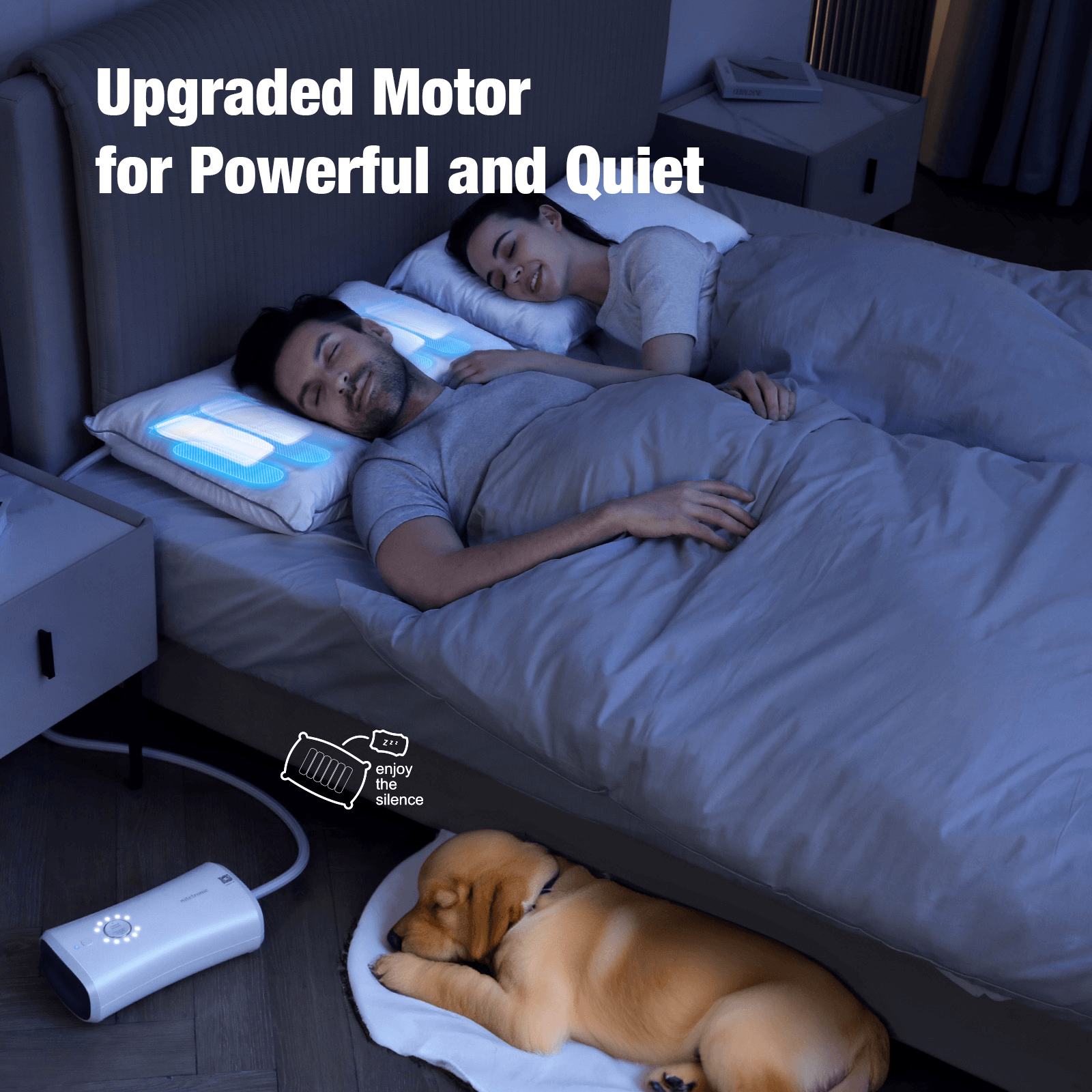 [静音]人が目覚めない音量30dbを下回る、操作音量28dbで、ご使用者本人も同室の方もぐっすり。