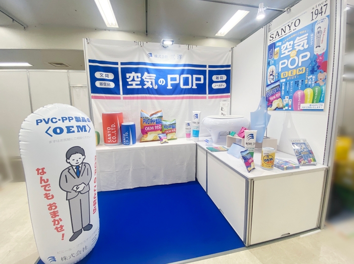株式会社三洋(本社:東京都中央区、代表取締役社長:堀井 裕之)は、2024年4月10日(水)から東京・池袋にて3日間開催された販促・企業ギフト・マーケティングの国際的な見本市「第69回 インターナショナル・プレミアム・インセンティブショー 春2024」(主催:ビジネスガイド社)に出展し、販促用の「ダミーPOP」をメインとした空気入りビニール製品を展示しました。ブースでは活用事例や制作の流れなどをご紹介し多くの方々にご来場いただき、盛況のうちに終了しました。また展示会特設ブースではサステナブル素材「リサイクルPVC」も出品いたしました。