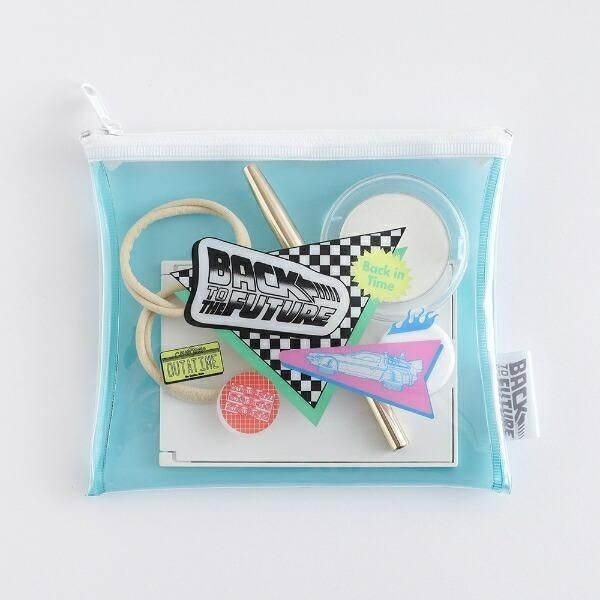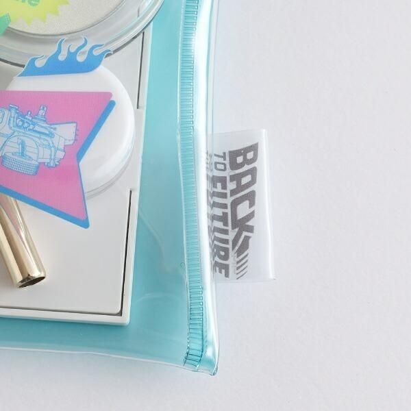 こちらは、バックトゥザフューチャー BACK TO THE FUTURE PVCポーチ (ミント) です。ふとしたことがきっかけで過去に戻り、両親の青春時代に巻きこまれた少年のわくわくストーリーが当時大ヒットを巻き起こしたバックトゥザフューチャー。そんな時代を超えて愛されるバックトゥザフューチャーは2025年に40周年を迎えるのだとか。