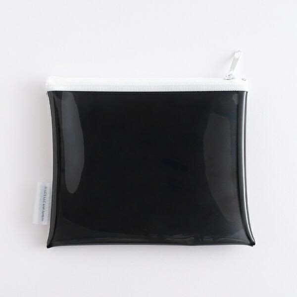 ビニール素材なので少しの水もはじきます。小物を入れたりコスメを入れるのにぴったりなサイズ感です。クリア素材なのでポーチを開けずに中を確認することもできて便利です。サイズ:13cm×17cm×1.5cm 素材:PVC