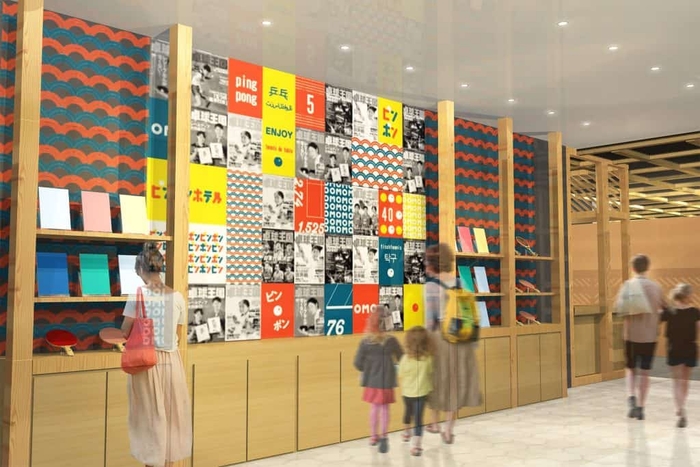 イベント期間中、館内の「OMOベース」に、「ピンポンラウンジ」が誕生!ファンはもちろん、これまでピンポンにあまり触れたことが無かった人も、ピンポンへの興味がそそられる空間です。本イベントのオリジナルデザインが施された卓球台が置かれており、誰でも気軽にピンポンを楽しめます。ピンポン球が跳ねる小気味よい音が、気分を高めます。また、世界選手権で使われていた卓球選手のユニフォームを展示。ピンポンラウンジの一角には、卓球専門誌「卓球王国」の歴代バックナンバーの表紙をコラージュしたアートウォールがあります。卓球の漫画や教本、ノンフィクションの書籍も100冊以上揃えてあり、ピンポンの歴史を気軽に知ることができます。