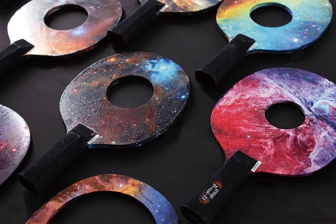 レベルに関係なく、子供から大人まで誰でも楽しめる「ブラックホール卓球(*)」がプレーできます。中央にブラックホール(穴)があいたラケットを使うピンポンで、経験豊富な人ほど、ピンポン球が穴を通り抜けて空振りしてしまいます。ラケット面には、JAXAやNASA提供の宇宙の写真を使用しており、まるでピンポン球が宇宙のブラックホールに吸い込まれるかのように見えるユニークなスポーツです。点をとっても取られても楽しめる、新ジャンルのピンポンです。