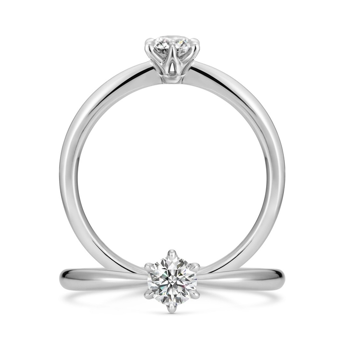 既存の人気デザイン『カテリーナ』の魅力をそのままに、石座の高さを低く設計して普段使いしやすさをアップしたデザインです。石座を低くしてもダイヤモンドの存在感が美しく引き立つよう、センターへ向かって絞るようなフォルムのアームがポイント。幅や厚みなど細部までこだわり、王道のソリテールリングのフォーマル感と、身に着けやすさを両立しています。