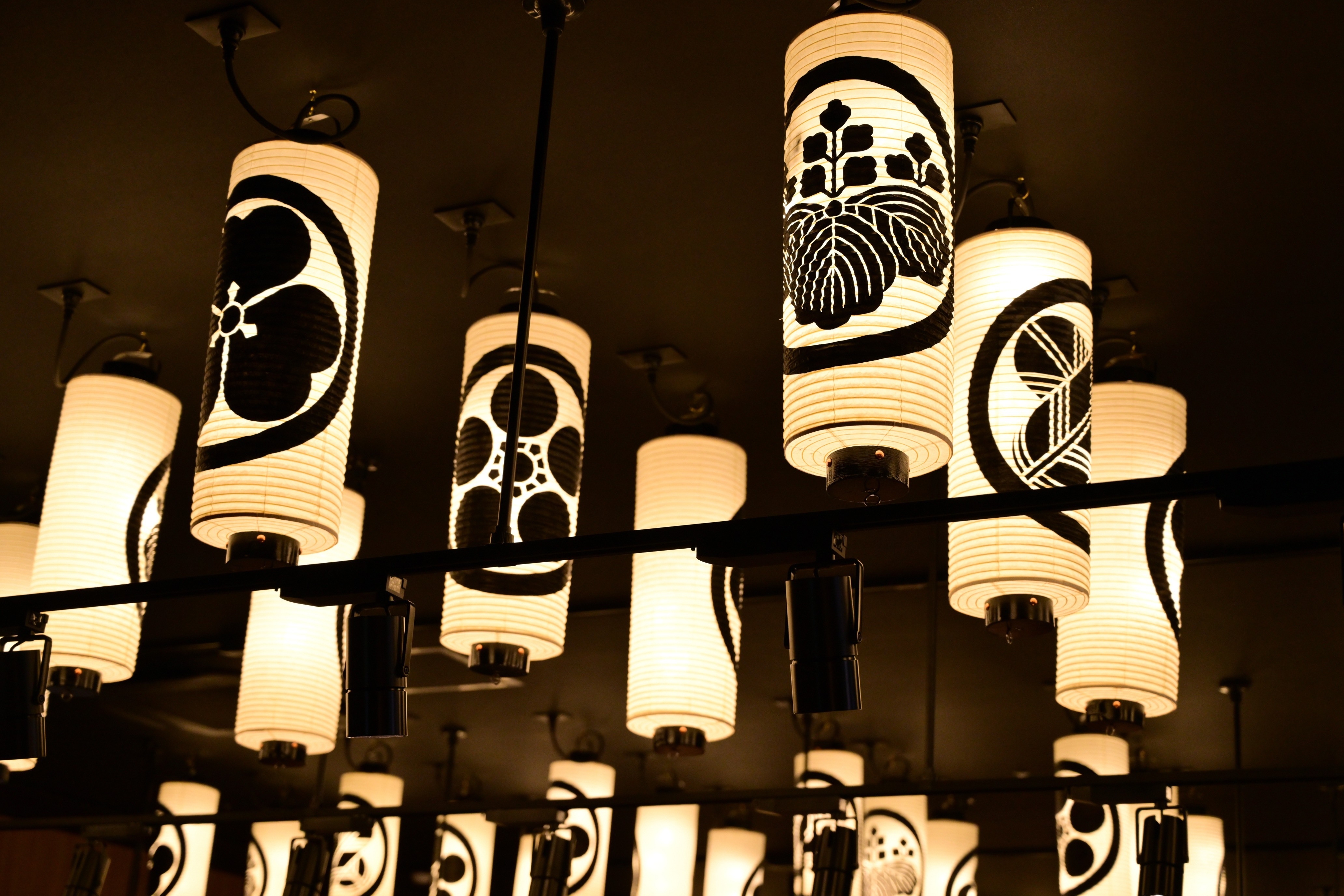 料理が並ぶバーカウンター上部には、祭りという非日常感を演出するため行灯をたらし、賑やかさや華やかさを表現しています。