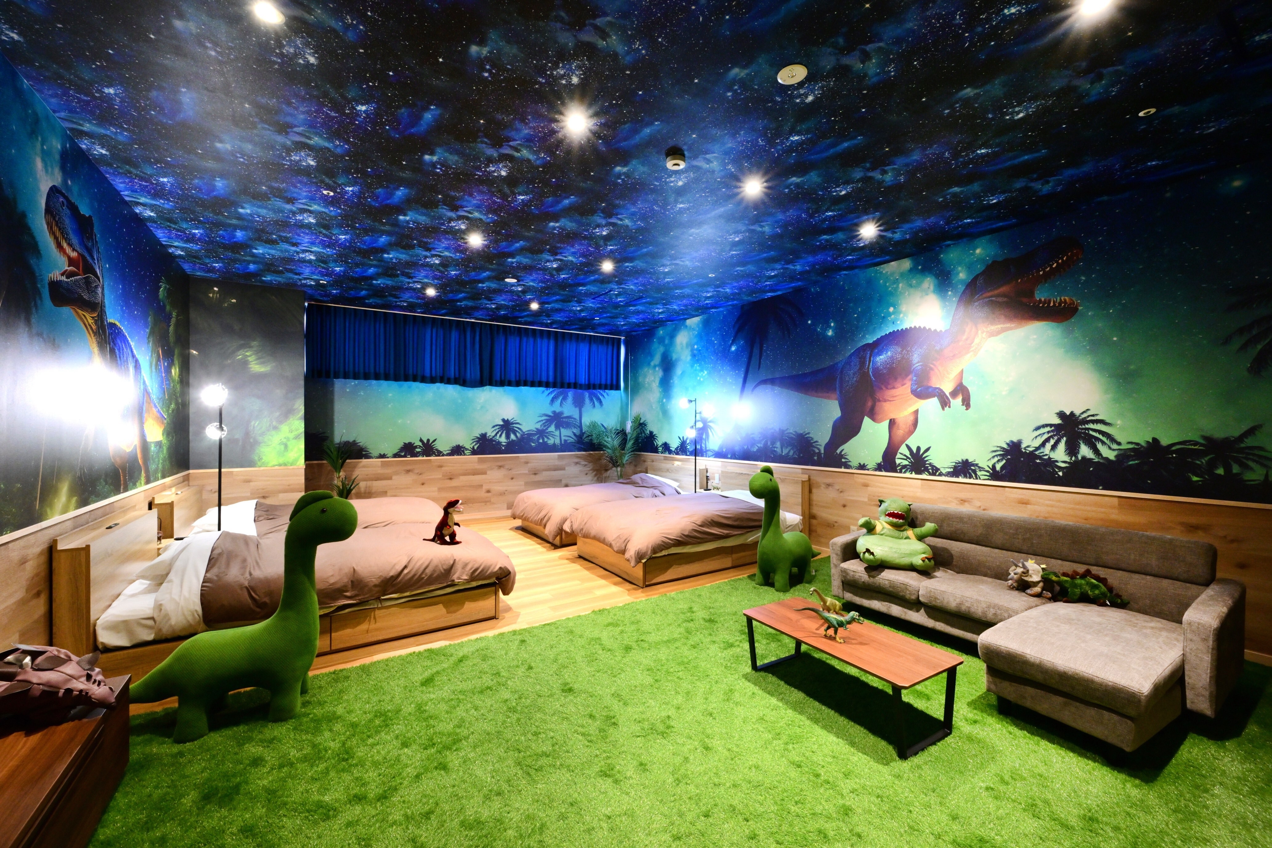 コンセプトを「空」「ジャングル」「草原」「海」の4つに設定し、それぞれの客室で全く違うシーンの恐竜たちを表現。