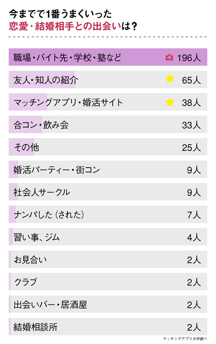 うまくいった恋愛の50%は「職場や学校」での出会い