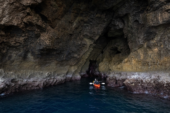 各施設が独創的なテーマで、圧倒的非日常を提供する「星のや」。沖縄県・読谷村にある滞在型リゾート「星のや沖縄」では、2022年6月1日~8月31日の期間、海岸線に潜む多様な絶景地を巡る「絶景カヤックジャーニー」を提供します。海岸線には、カヤックでしか辿り着くことができない絶景のポイントが多数点在します。ポイントの近くまではクルーザーで快適に移動し、その後は小回りの利くカヤックに乗り換えます。水面に近いカヤックからは、高さ30メートルの切り立つ岸壁や洞穴の神秘的な世界を間近に望むこともできます。河口付近でマングローブの茂みに分け入ることができるのも、カヤックならではの体験です。