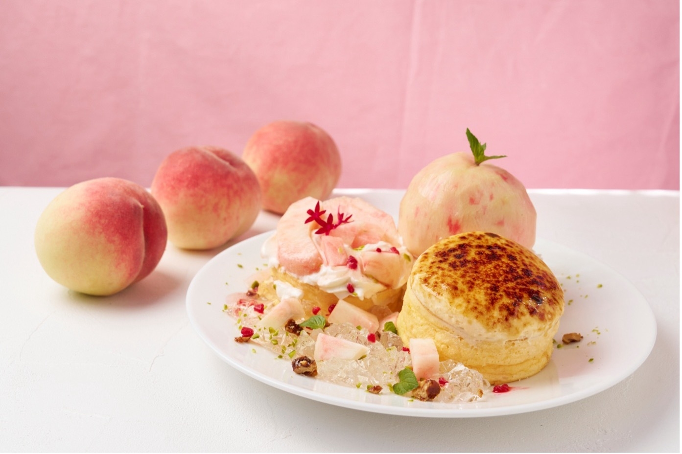 TAMAGOYAの1番人気「ブリュレパンケーキ」と、旬の桃を使ったパンケーキが一度に楽しめる新メニュー「真夏のもも雪姫パンケーキ」が登場!