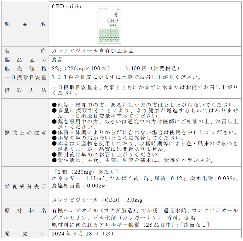 「CBD taisho」 新発売