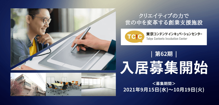 東京コンテンツインキュベーションセンター(TCIC)(運営受託:株式会社ツクリエ)は第62期の入居募集を開始、10月19日(火)まで応募を受け付けています。アニメ、映画、ゲームなどコンテンツ分野のベンチャー企業や創業間もない方のご応募をお待ちしています。