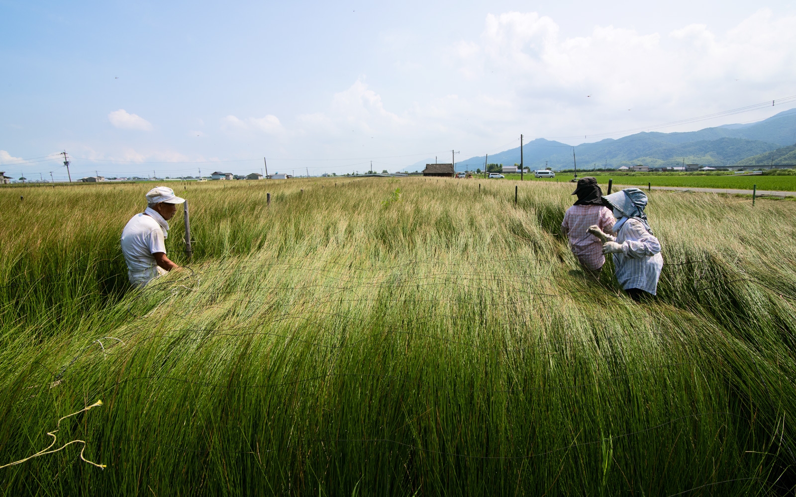 熊本県の中でも豊富な水、温暖な気候など、い草の栽培に適した条件がそろっている八代地域は、国内有数のい草産地として国産畳表生産の大部分を担っており、日本の伝統文化である畳表を支えています。