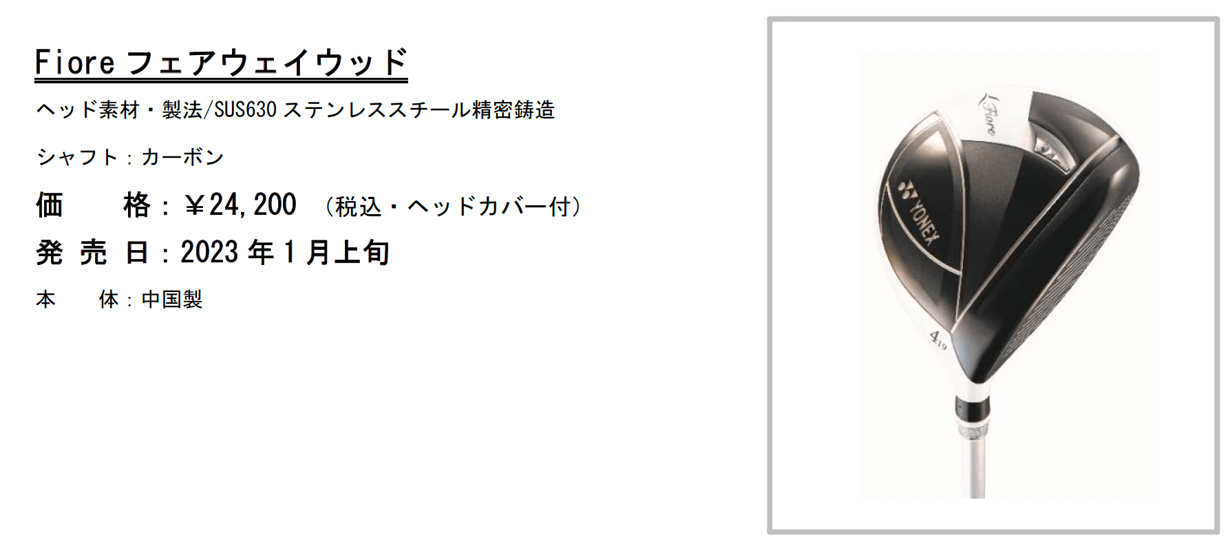 ヨネックス株式会社(代表取締役社長:アリサ ヨネヤマ)は、楽に振り切れる軽さで、もっとゴルフを楽しみたい、スコアアップを目指したい、という女性ゴルファーに向けた「Fiore(フィオーレ)」シリーズを2023年1月上旬に発売いたします。