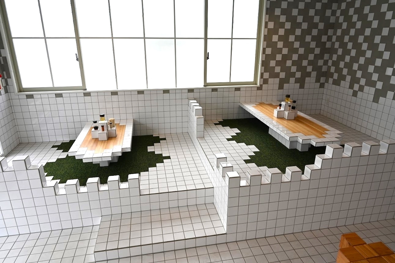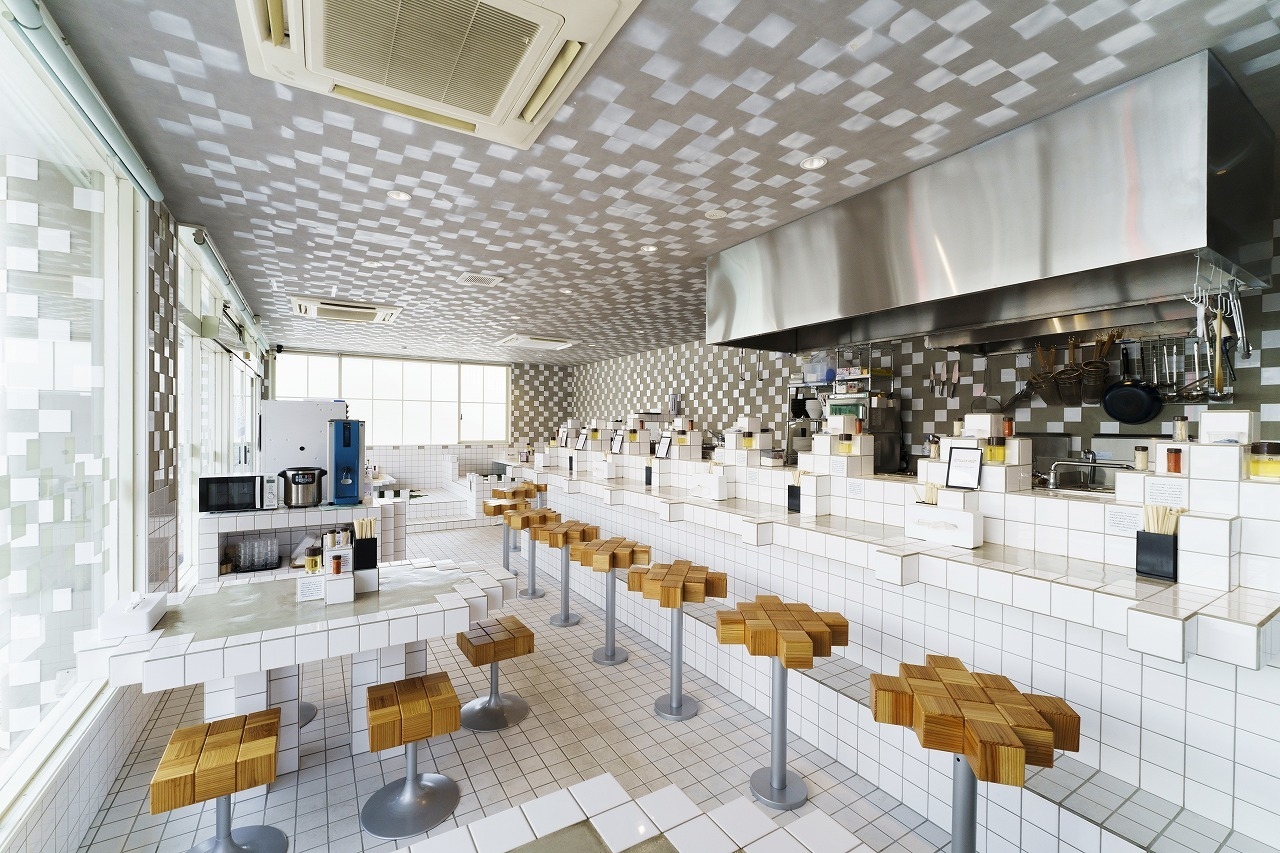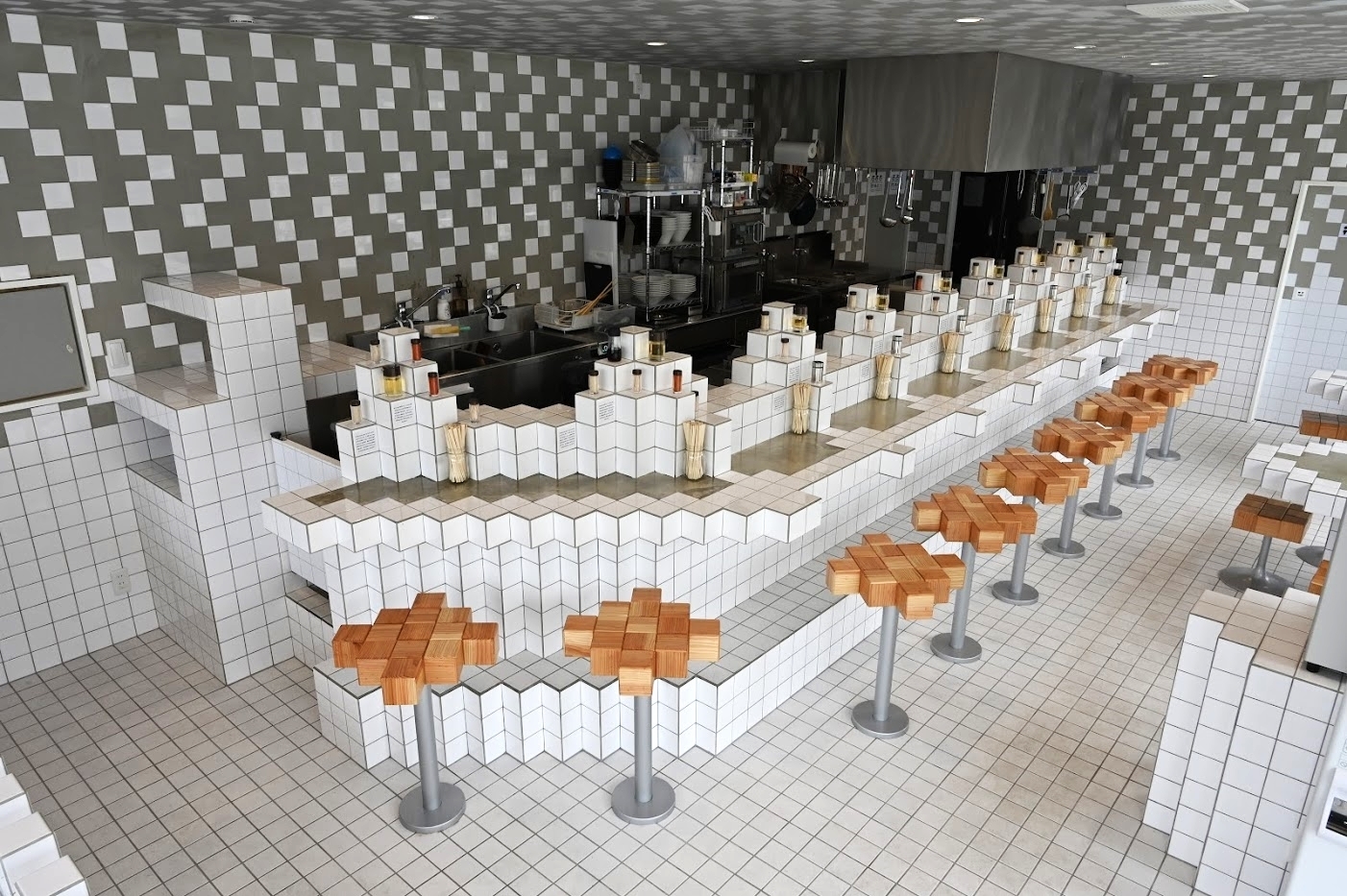 「ゲームの世界観で本格的なつけめんを」をコンセプトに、まるでドットで描かれたような店内で極上のつけめんをお楽しみいただけます。氷山のようなカウンター席、城のような小上がり席など「ラーメン屋ってどこも同じようなデザイン」のイメージを払拭し、食べる前からワクワクするような店舗デザインになっております。