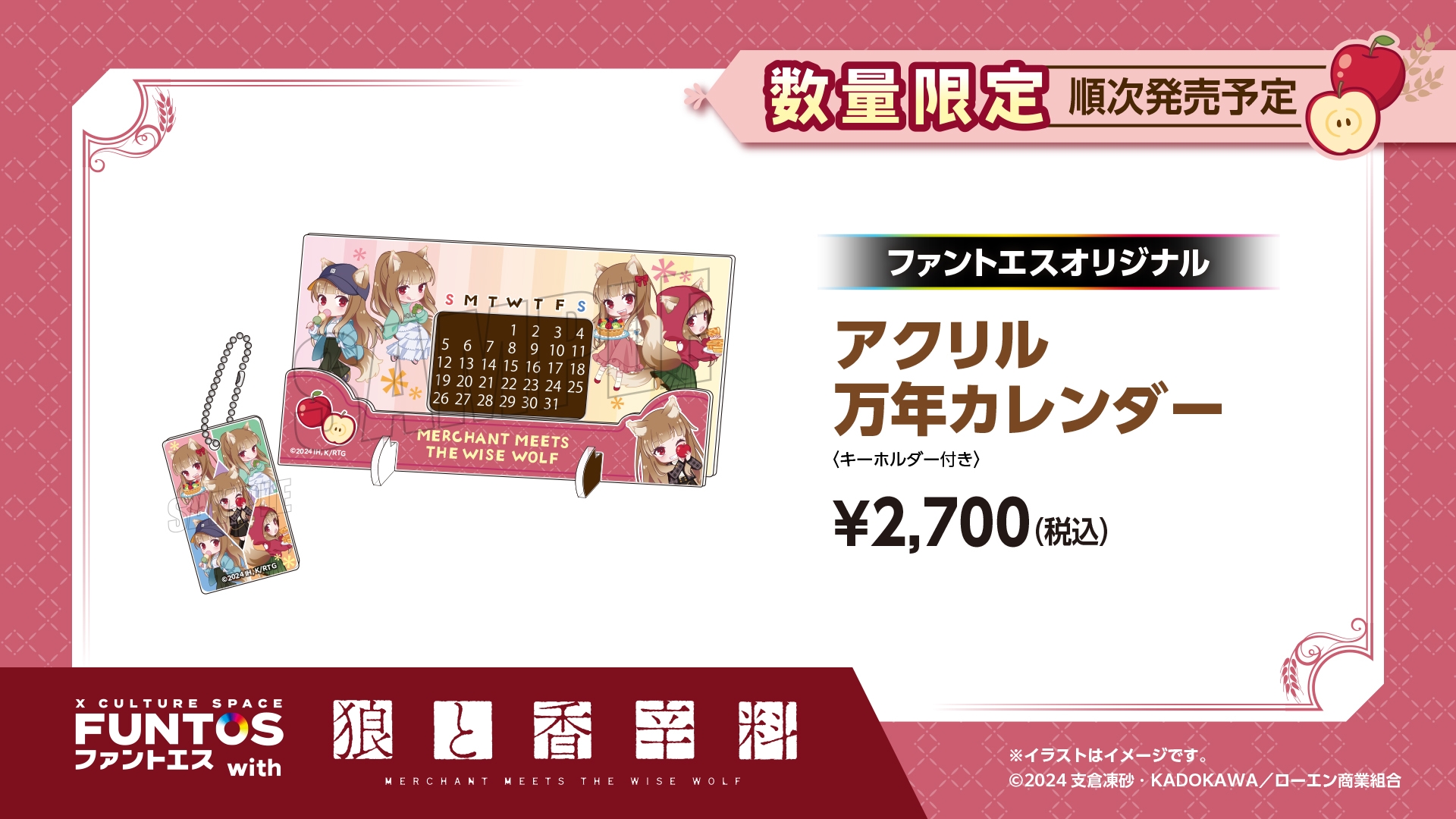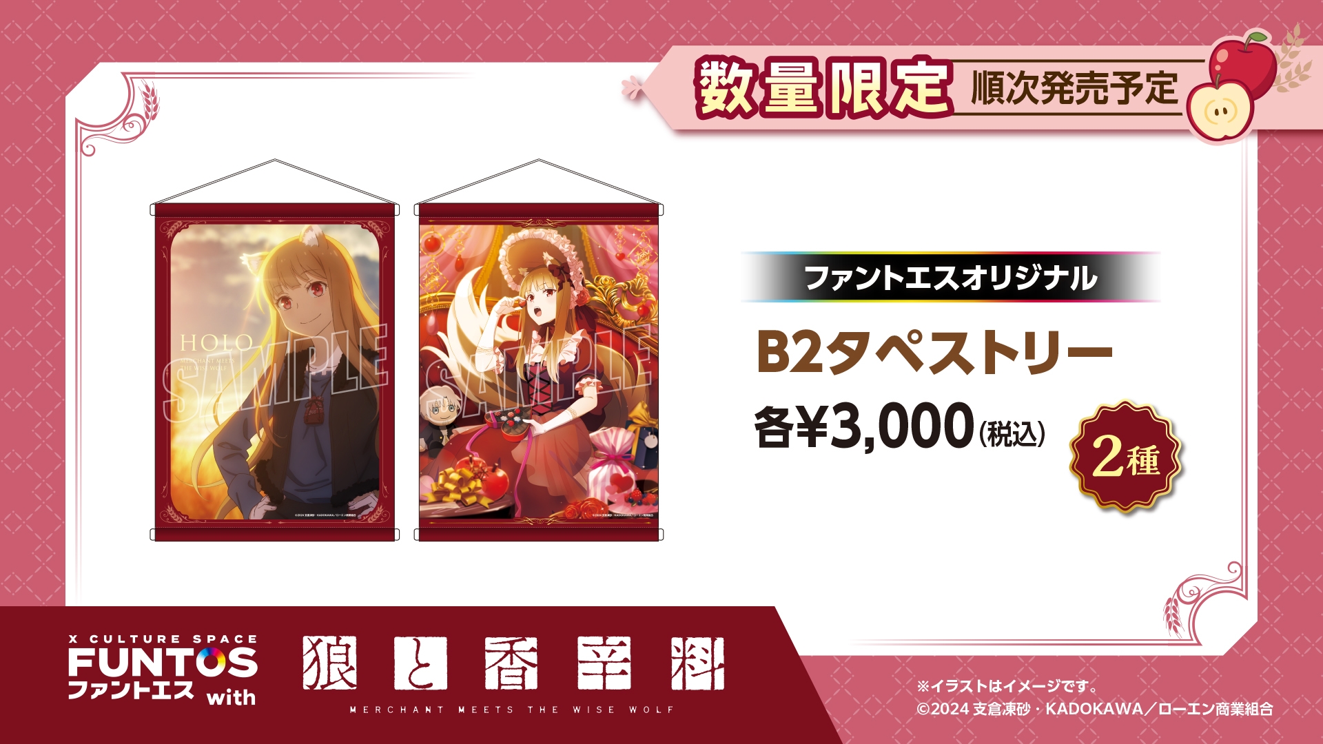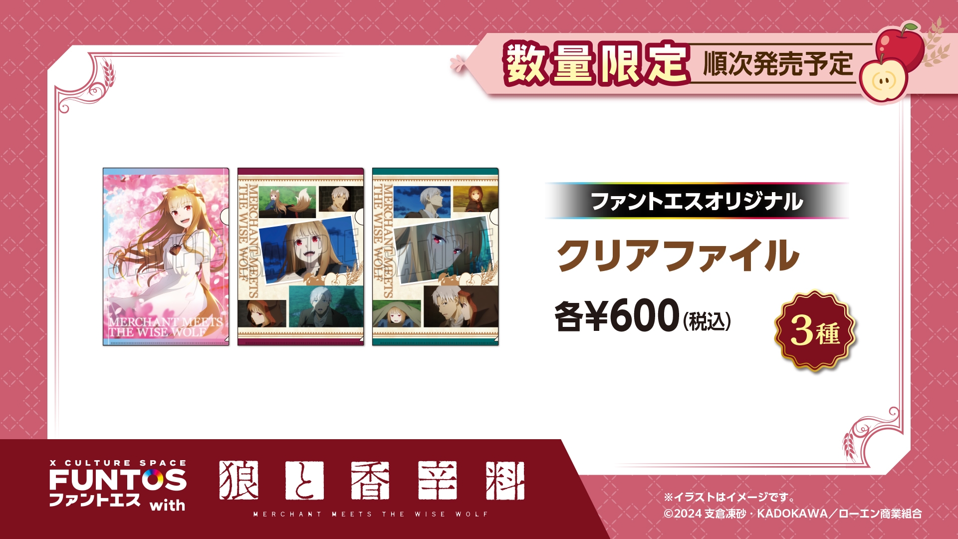 株式会社ソユーは、コラボレーションスペース事業「ファントエス」最新弾として、『ファントエス with 狼と香辛料 MERCHANT MEETS THE WISE WOLF』を全国のファントエスおよびオンラインショップにて2024年4月23日(火)~2024年5月15日(水)の期間限定で開催いたします。