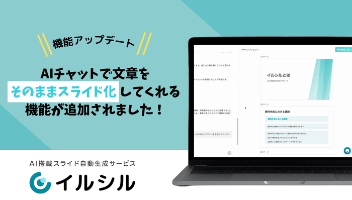 【新機能リリース!】AI搭載スライド自動生成サービス「イルシル」に、「本文そのまま+デザイン生成(β版)」搭載!