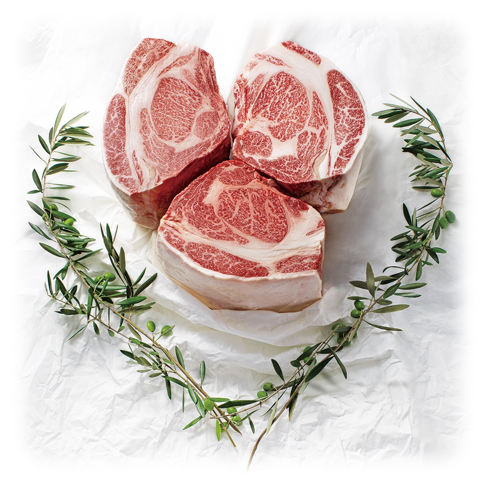 「オリーブ牛」とは、日本のオリーブ栽培発祥の地である、香川県・小豆島のオリーブの搾り果実を与え、瀬戸内の温暖な気候風土のなかで育まれてきた讃岐牛。小豆島の気候に恵まれた、香川県だからこそ成し得たプレミアム黒毛和牛。