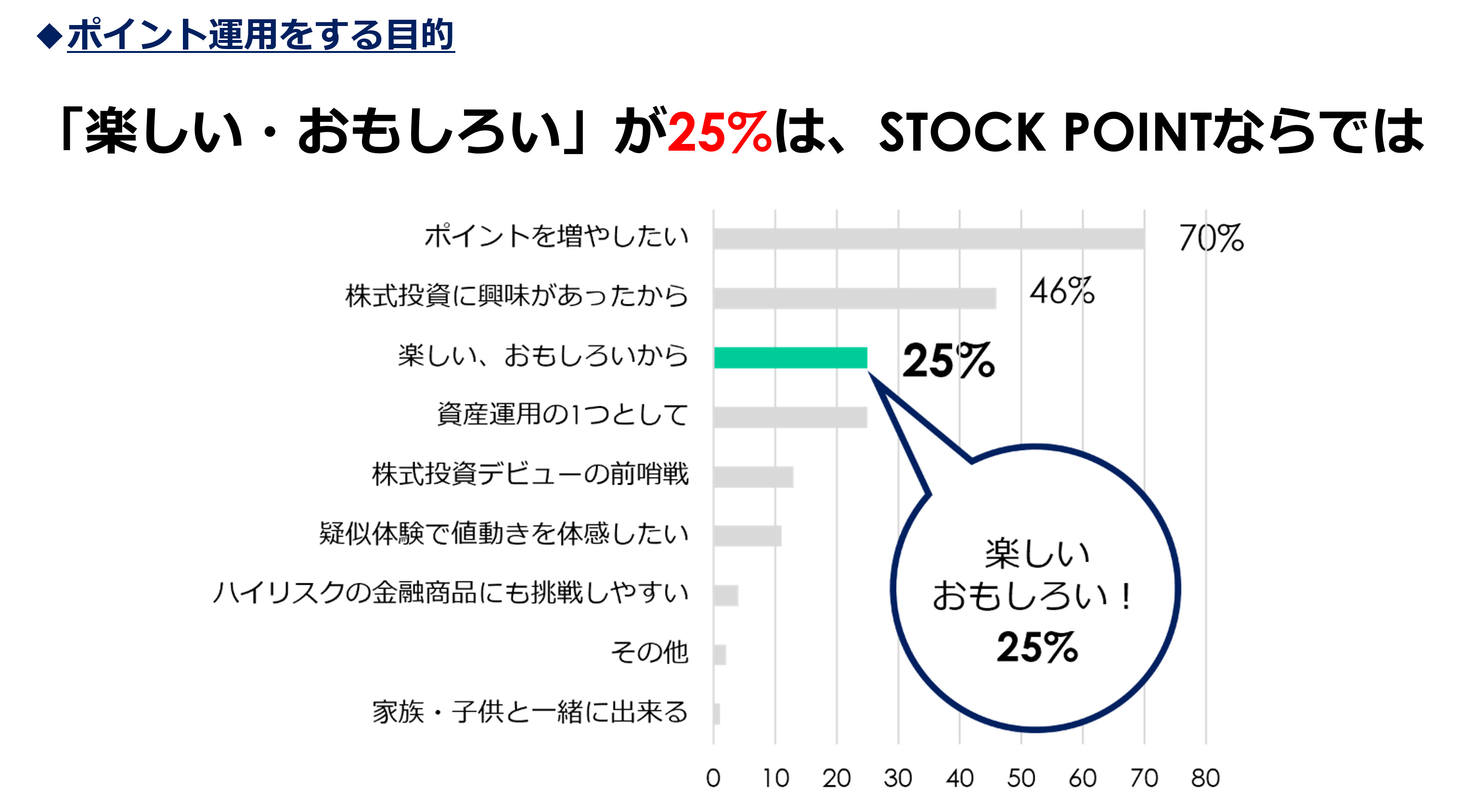 <STOCK POINT会員アンケート調査2023> ポイント運用の目的「楽しい・おもしろい」が25%