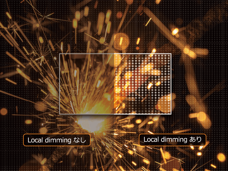 ローカルディミングを採用、直下型Mini LEDライトをエリア毎に制御し、明るい部分がより明るく、暗い部分がより暗くなります。