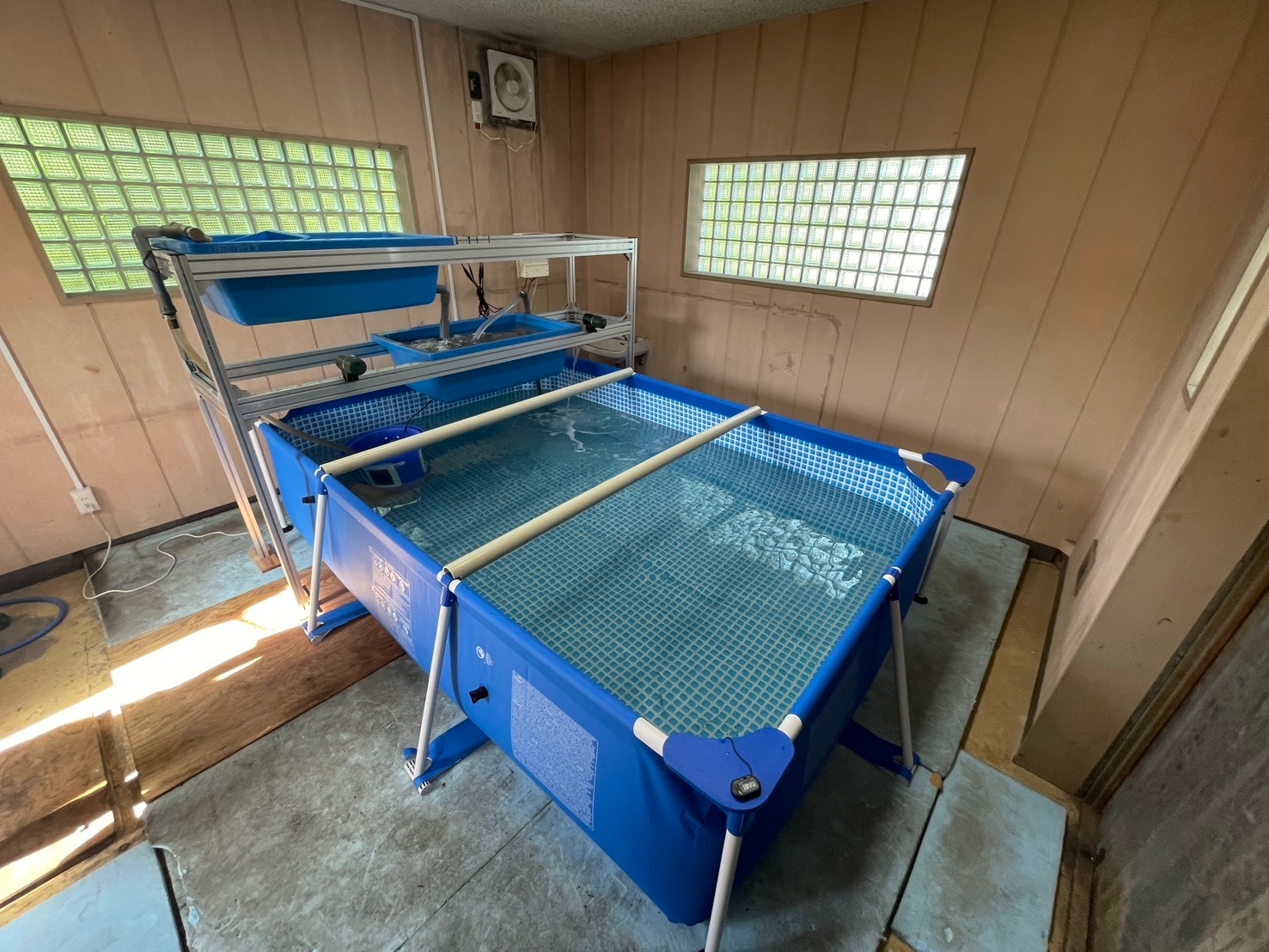 バナメイエビ(注記2)の閉鎖循環式陸上養殖(10月2日に稚エビを投入しました。)