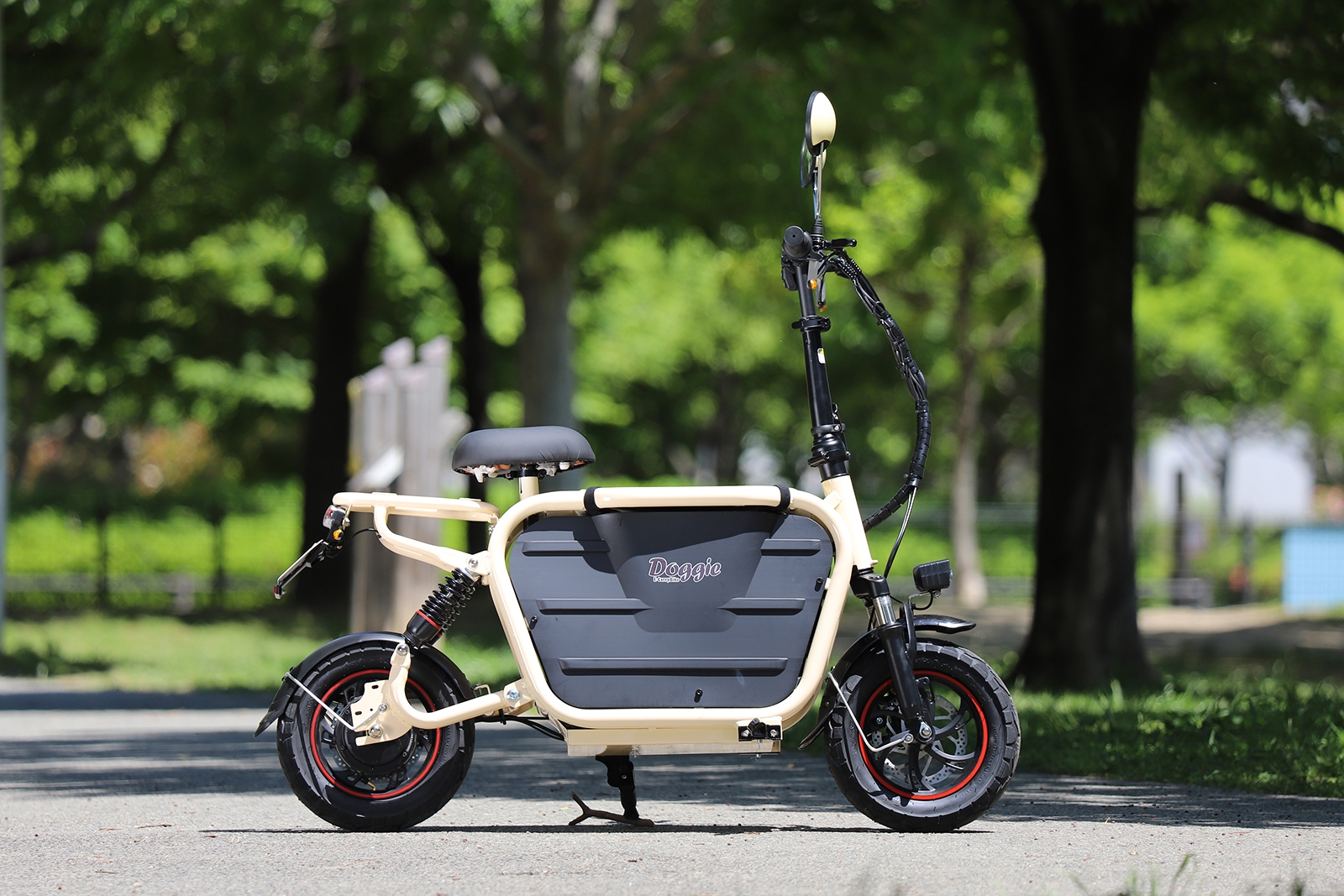 車を出すまでもない、「ちょっとそこまで」を実現する電動バイクDoggieがあれば、あなたと愛犬の日常はもっと楽しくなるはず!天気の良い昼下がり。愛犬を乗せて気軽に旅に出よう。