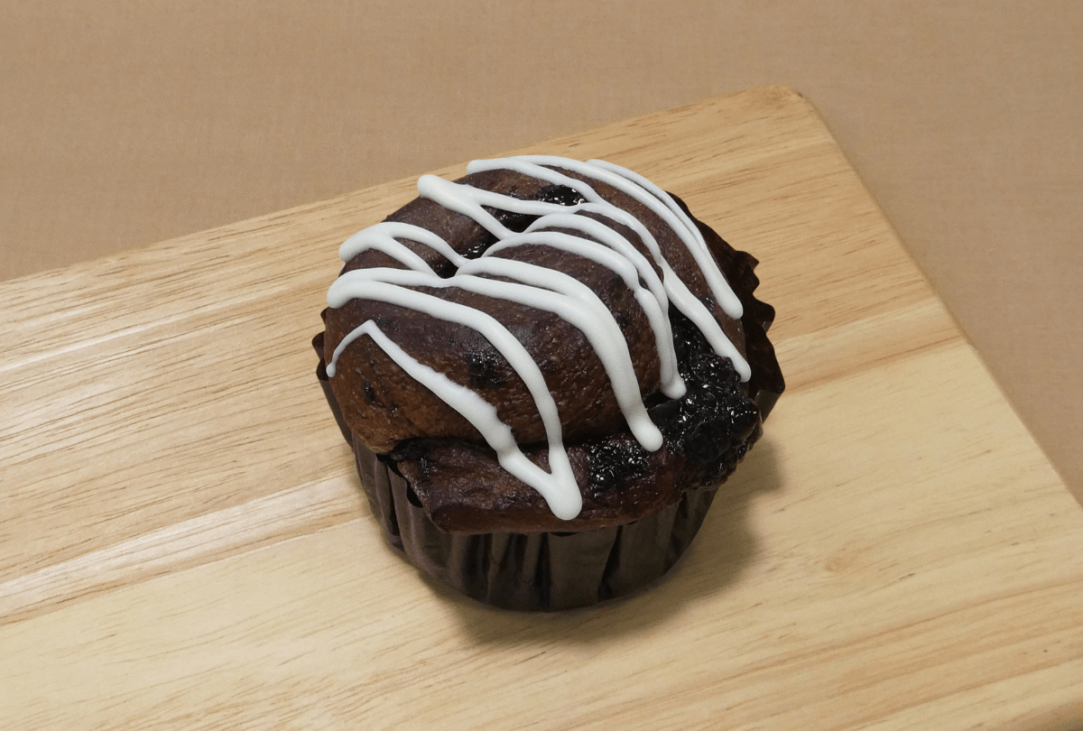 チョコを練り込んだ北海道産小麦100%のパン生地に、北海道美幌高等学校で製造した「ハスカップジャム」とチョコチップを包み焼き上げた後、ホワイトチョコでデコレーションしました。ほんのり甘酸っぱいハスカップジャムと2種のチョコレートとのハーモニーをお楽しみください!