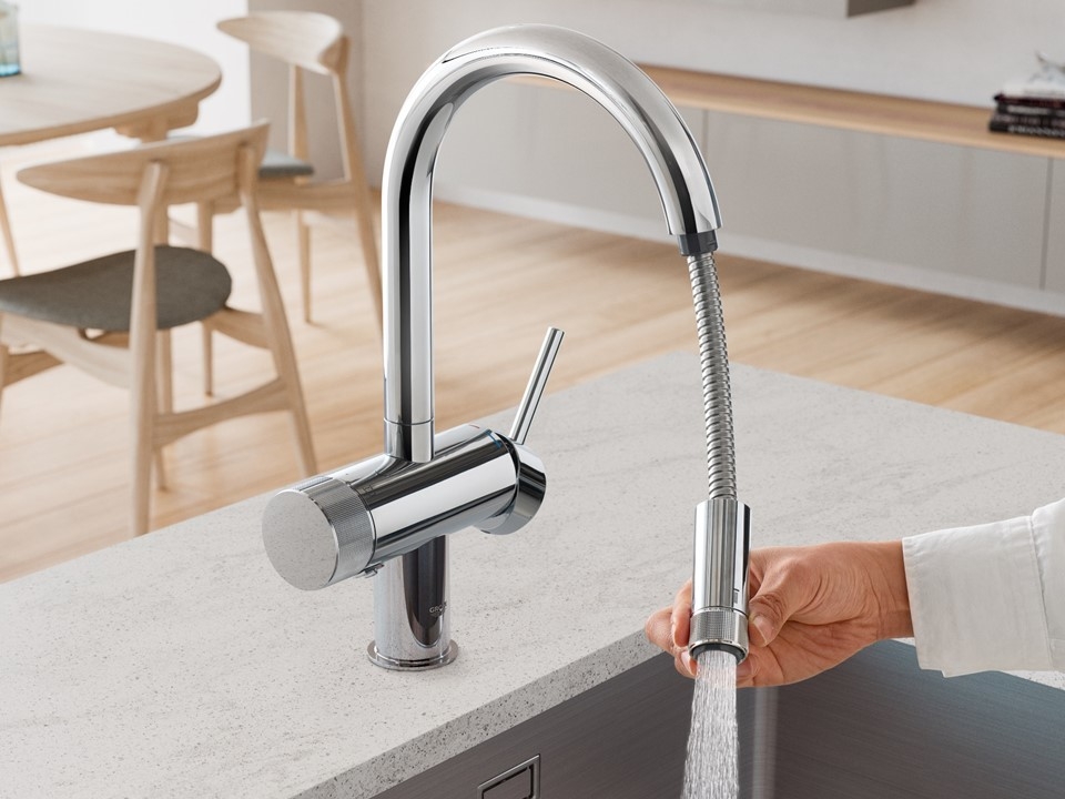 高級水栓メーカー“GROHE”のミンタシリーズから、 デザインも機能も兼ね備えた 浄水器一体型キッチン水栓が2022年6月リリース