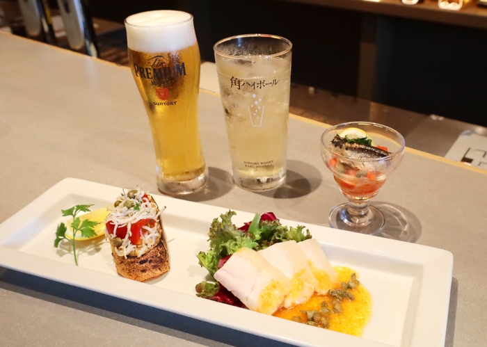 選べるおつまみプレートは晩夏から初秋にかけてのシーズンにぴったりの、さっぱりとした味わいが揃います。