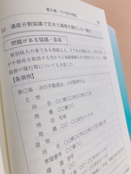◆遺産分割協議における検討漏れや不備のある条項例を取り上げ、問題点を指摘しています。