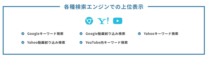 Google Yahooのキーワード検索のほかに、動画の特性上Google Yahooの動画絞り込み時の検索も対象になります。