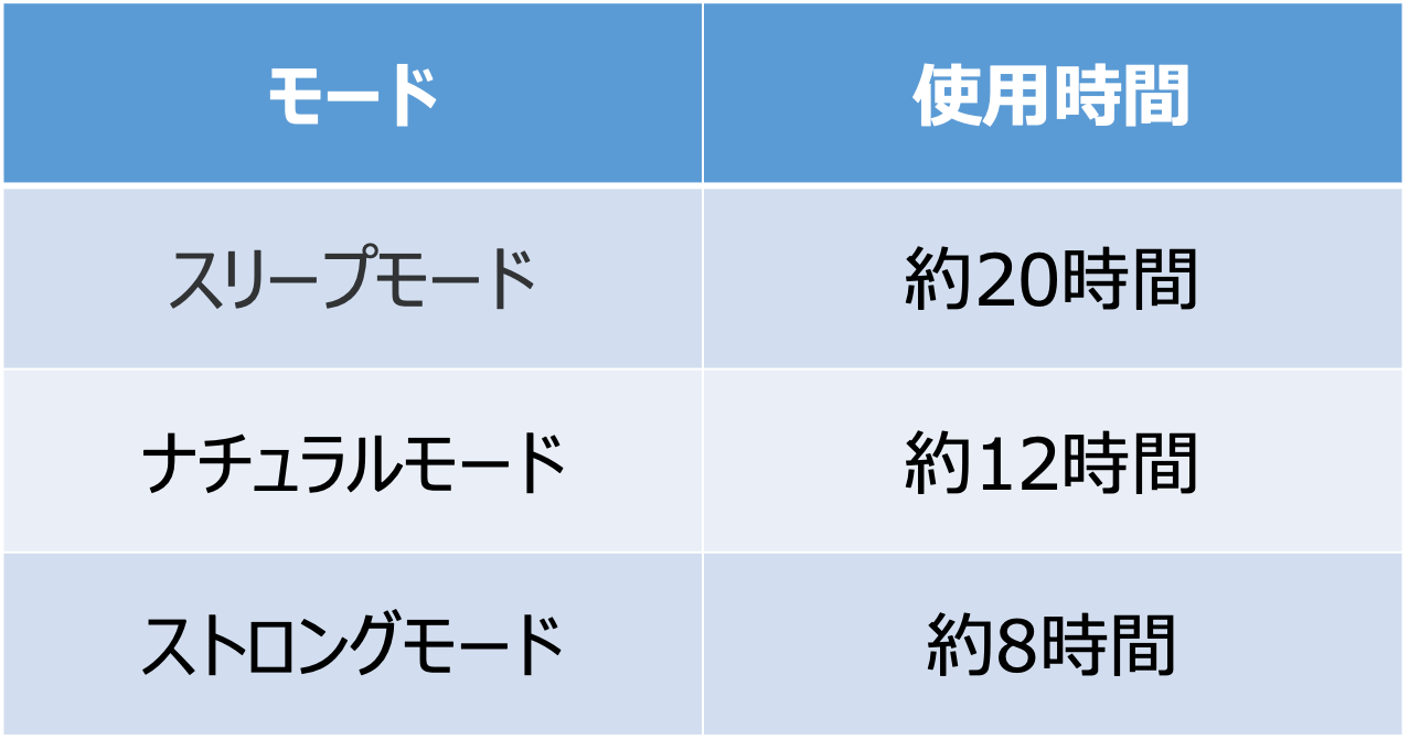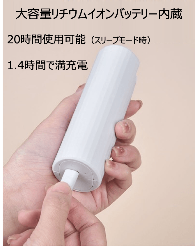 1200mAhの大容量バッテリー搭載で約20時間連続使用可能です。(低速時)