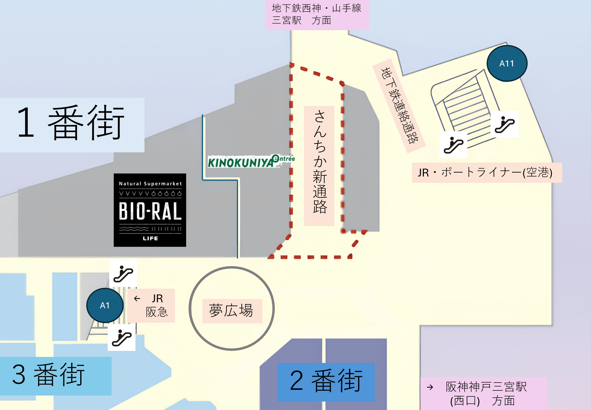 新通路(神戸市営地下鉄西神・山手線三宮駅~さんちか)が12月1日(日)に開通する予定となっております。