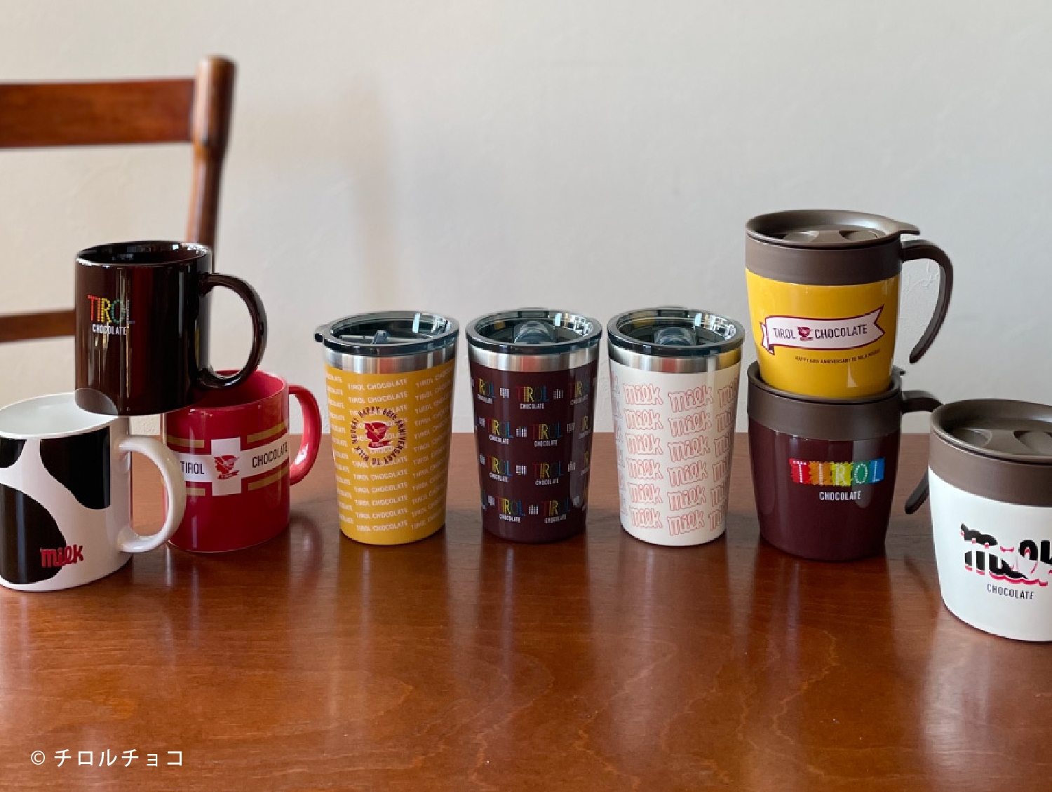 “楽しいお菓子で世の中明るく”のチロルチョコの理念から生まれたシリーズ。1979年に発売されたロングセラー商品「チロルチョコ〈コーヒーヌガー〉」や人気のチロルチョコのlogoをプリントしたドリンクウェアが登場。カラーもチロルチョコのカラーリングで展開。忙しい毎日の中、ほっと息をつける時間に、手にした時に笑顔になれる「212キッチンストア」オリジナルアイテムです。