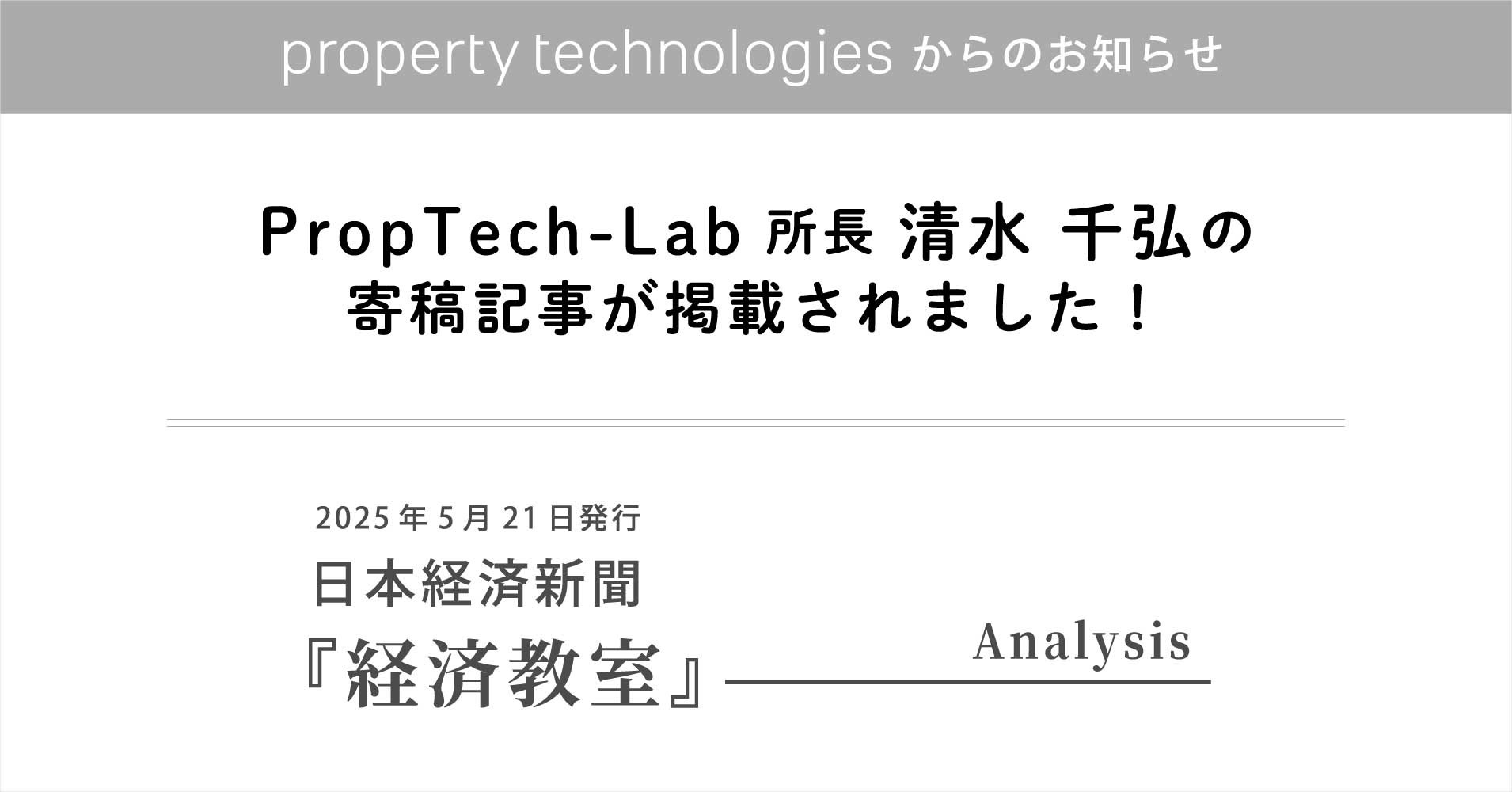 株式会社property technologies(以下「当社」)の研究・開発組織『PropTech-Lab(プロップテック・ラボ)』所長である清水 千弘(一橋大学 教授)の寄稿記事が、2025年5月21日(水)発行の「日本経済新聞『経済教室』(25面)」にて掲載されました。
