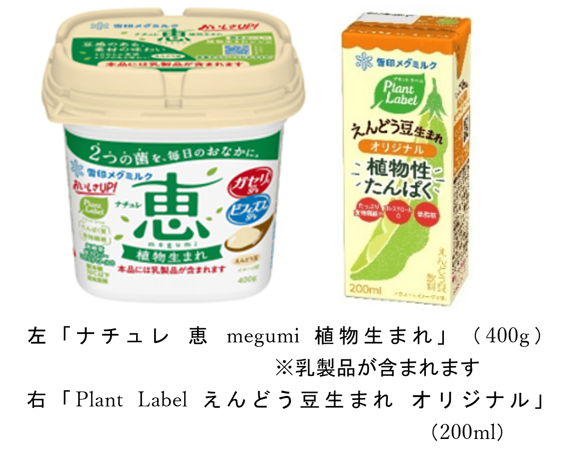 雪印メグミルクがこのイベントにおいて大阪府と連携して提案するのは、当社のプラントベースフード商品である「ナチュレ 恵 megumi 植物生まれ」と「Plant Label えんどう豆生まれ オリジナル」を使用した「おおさかEXPOヘルシーメニュー」です。