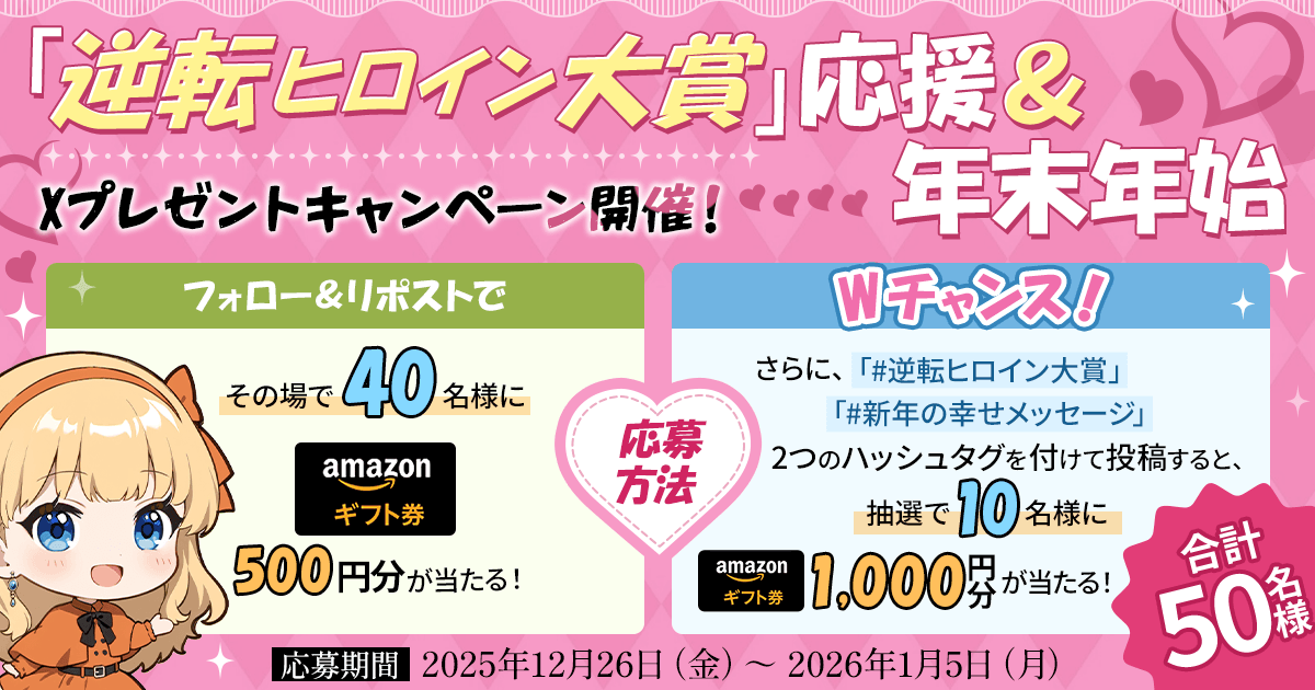 WEB小説投稿サイト「ネオページ」、年末年始にXプレゼントキャンペーンを開催!「逆転ヒロイン大賞」応援で合計50名様にAmazonギフト券が当たる | NEWSCAST
