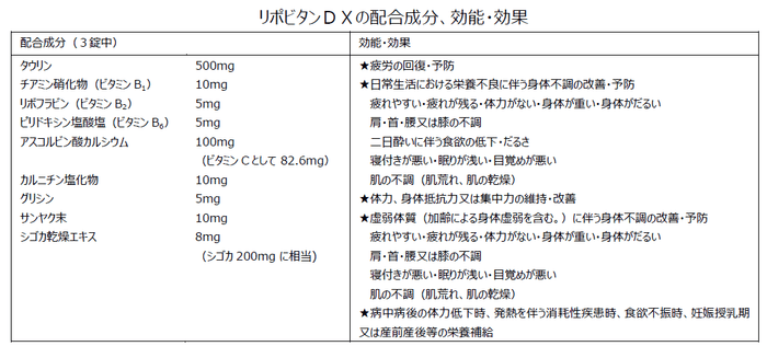 リポビタンDXは、疲労と栄養の偏りによる睡眠の悩みに同時にアプローチする指定医薬部外品です。有効成分をぎゅっと詰め込み、極薄フィルムコーティングにより飲みやすい錠剤ができました。我々の自信作をぜひお試しください。