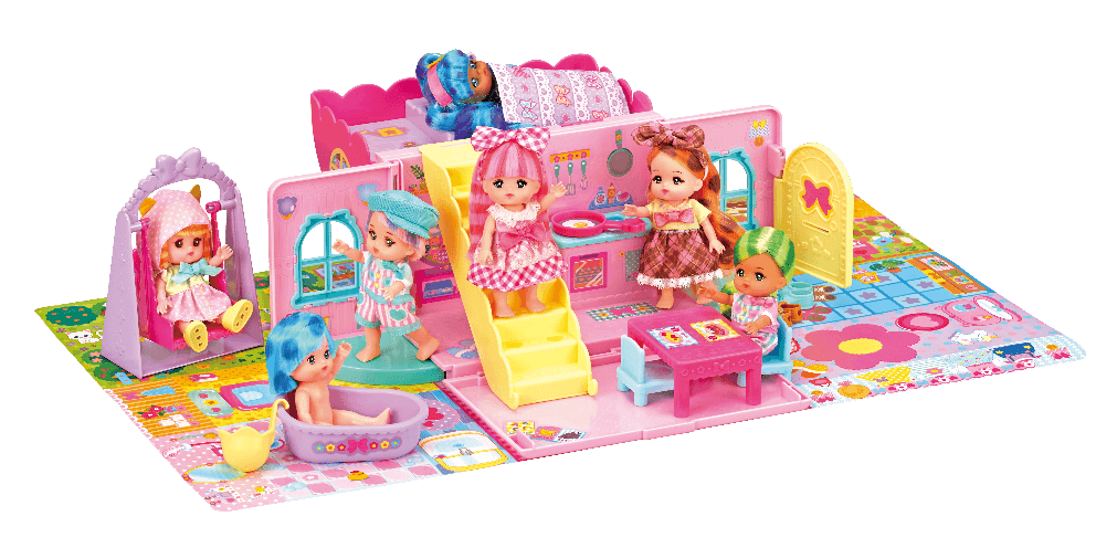 今回は、2021年9月に販売開始の「ポケットメルちゃん」シリーズから、「はじめてのポケメルハウスDX」を年末限定販売!はじめてポケットメルちゃんと出会うお子様にぴったりのセットです。2階建てのすてきなおうちは、すべりだいやブランコで楽しんだり、お料理をしたり、お風呂に入ったり、パジャマワンピにおきがえしてベッドで眠ったり、楽しい遊びがいっぱいです。