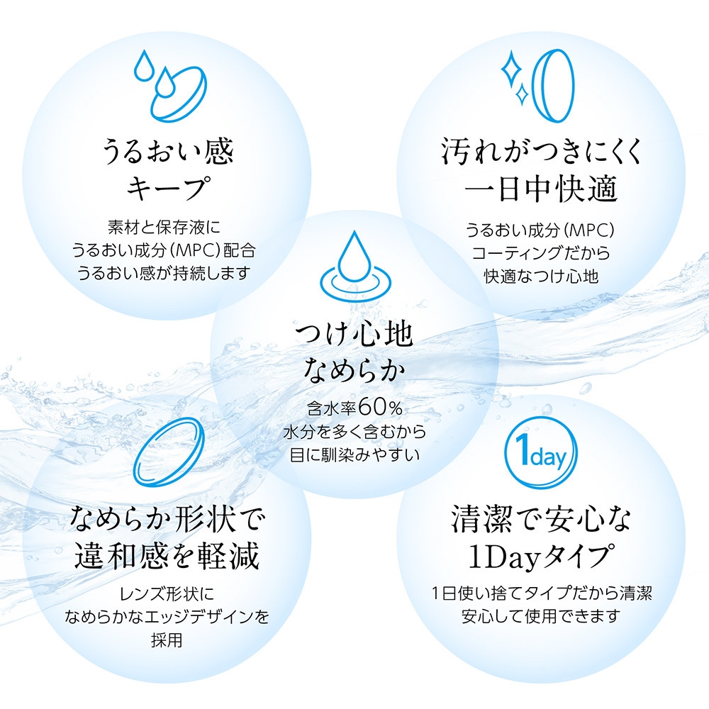 1日使い捨てタイプで、毎日の装用で清潔かつ簡単に使用できます。