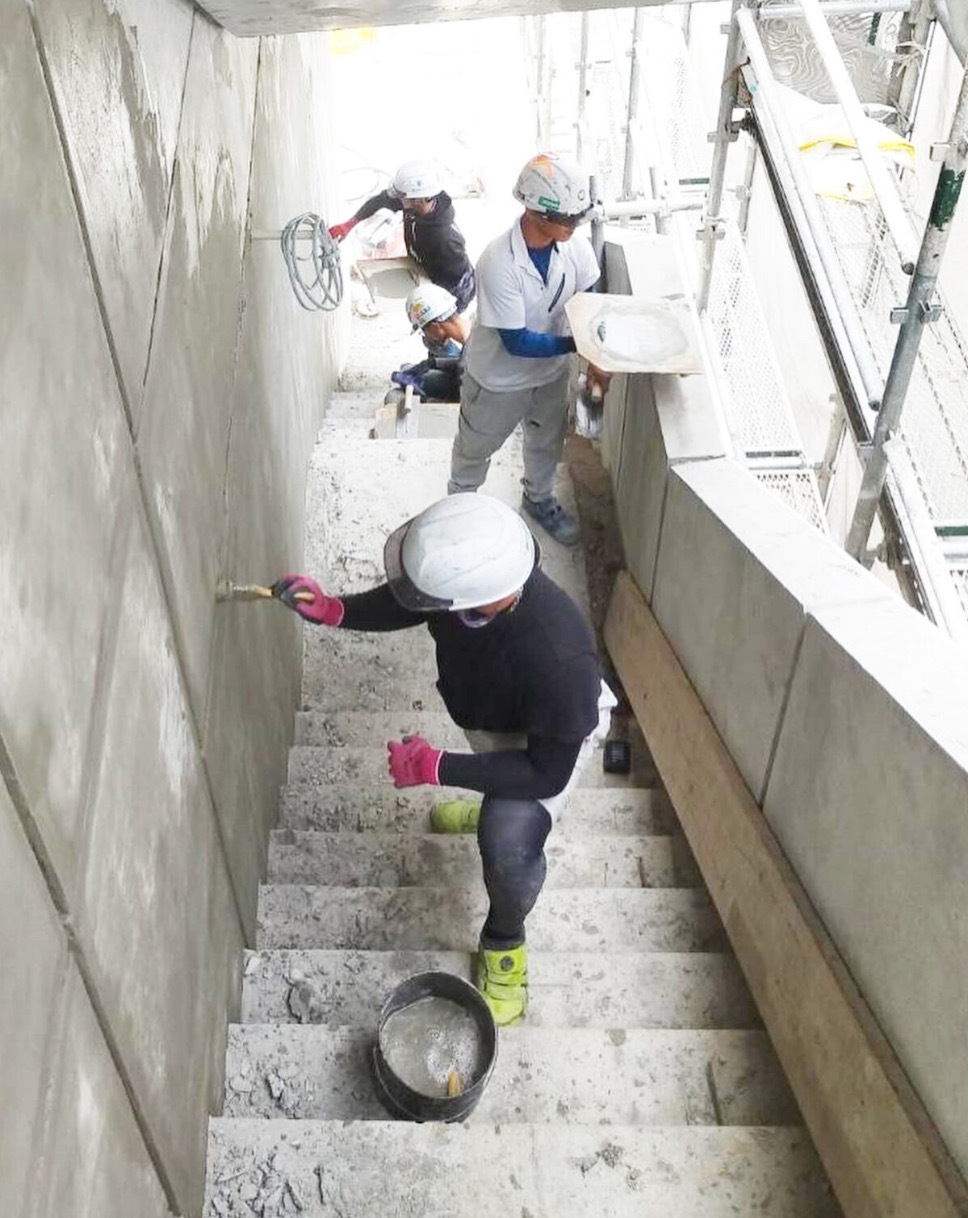 蜂谷社長自ら毎日発信するInstagramやFacebookなどSNSを駆使した現場からの活動報告に、同業者や求職者から注目が集まり、施工エリアをどんどん拡げ、土間施工に留まらず左官工事一式受注と事業拡大を進めています。