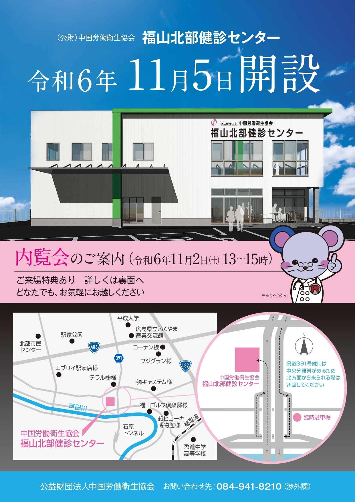 場所:公益財団法人中国労働衛生協会 福山北部健診センター