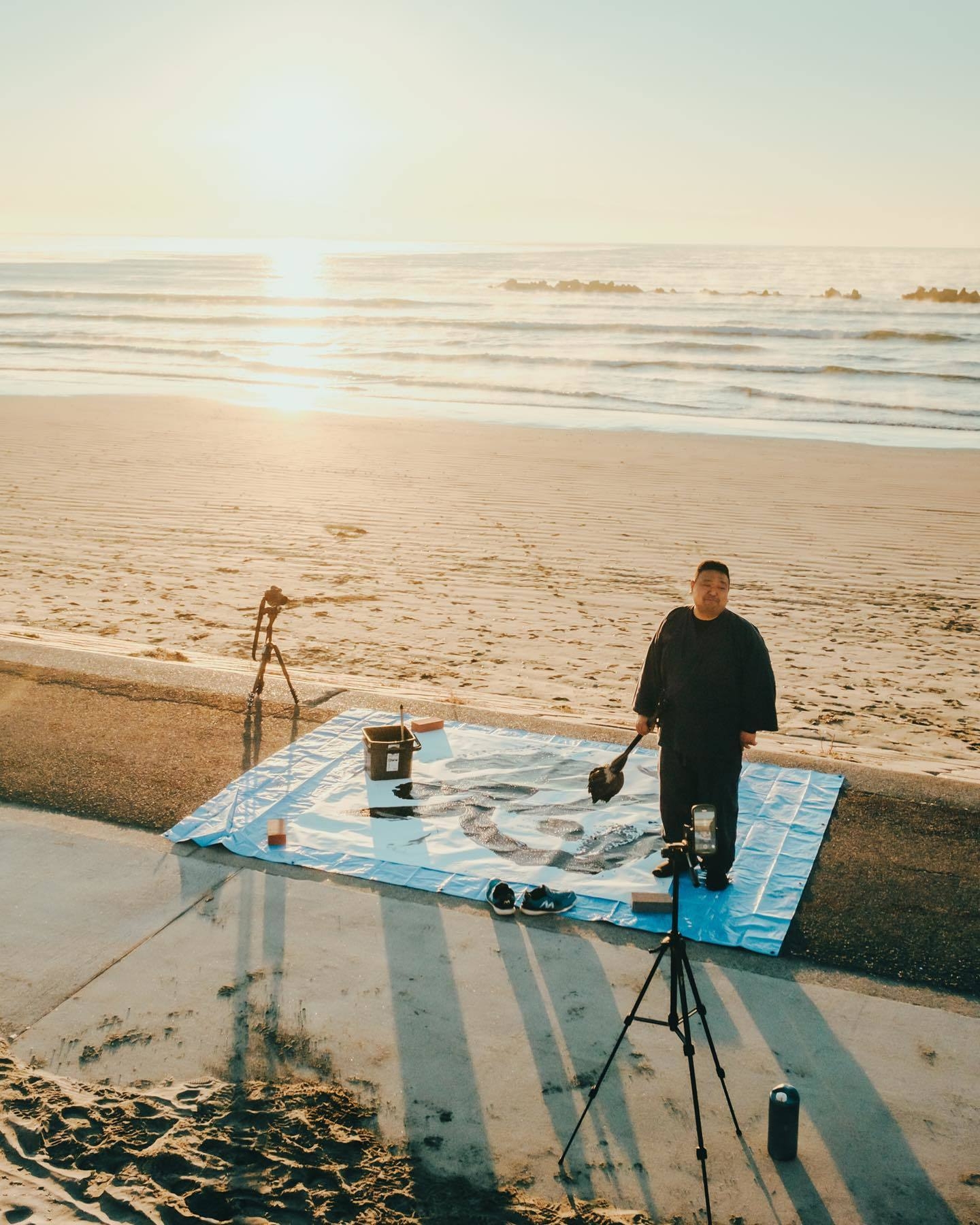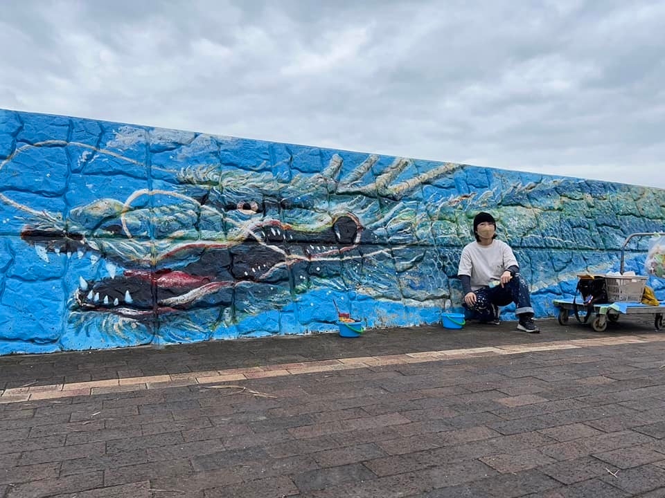 ・特に被害の大きかった飯岡地区など旭市内の18ヶ所に展示ポイントを設けました。招待作家含めた20人以上の芸術家(ほぼ3分の2は市内在住)の、長さ100mの堤防壁画や四輪駆動車を改造したオブジェ、伝統工芸、書道、絵画、写真など様々なアートを配置します。