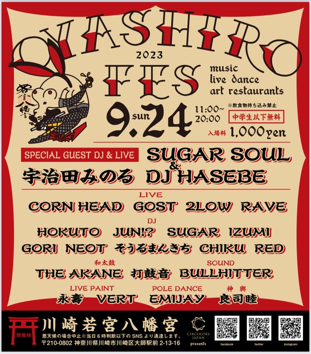 イベント開催を全国で行うNPO法人CirColorsJapan(所在地:神奈川県川崎市川崎区追分町、代表理事:赤根 広志)は、日本発のNewクラブカルチャーが体験できるイベント『OYASHIROFes23』を2023年9月24日(日)に神奈川県川崎市の若宮八幡宮(金山神社)で行います。