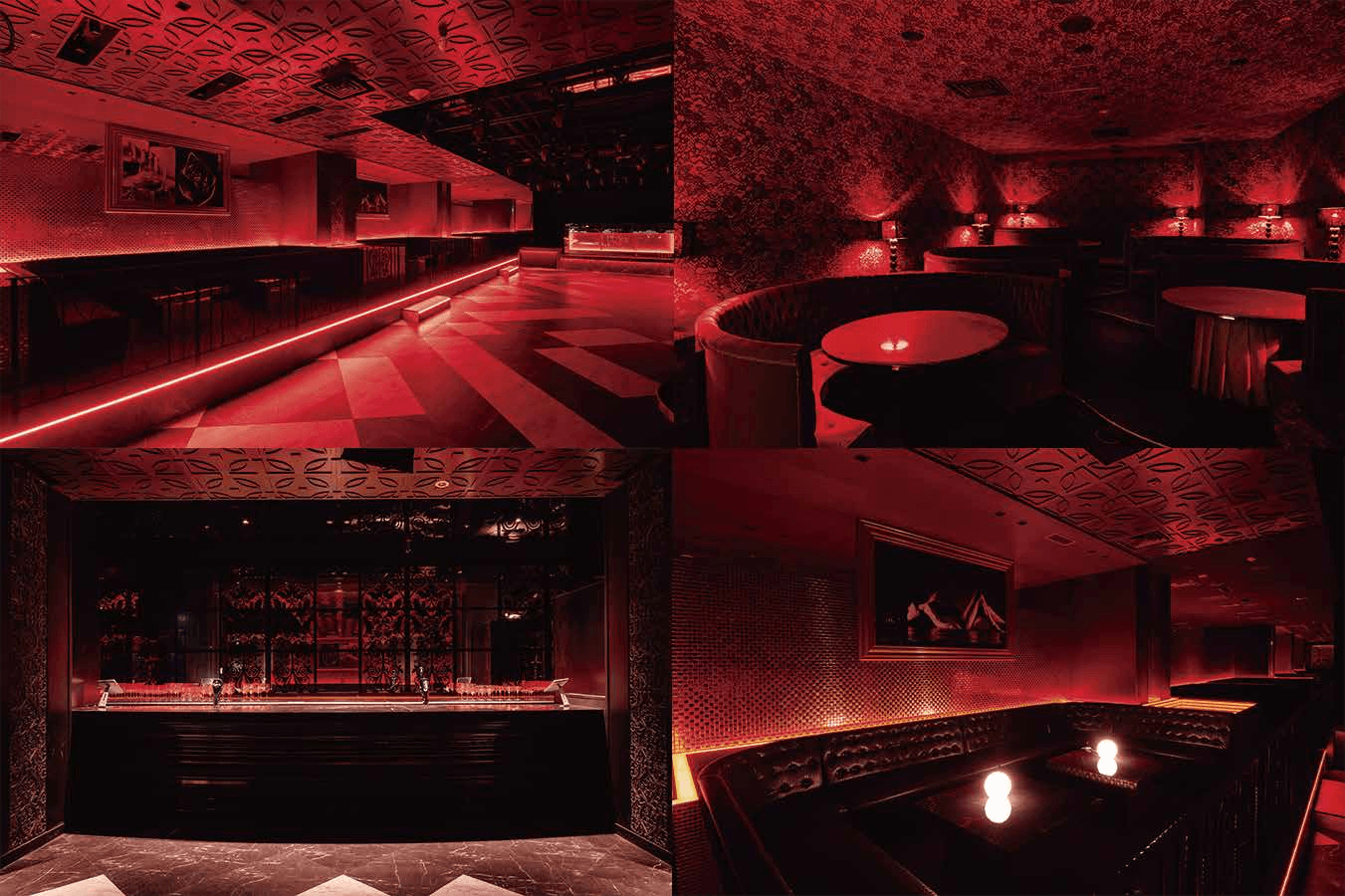 レッドとブラック、ゴールドを基調とした店内は、ラグジュアリー且つクラシカルで重厚な内装となっていて、妖艶な雰囲気を醸し出しています。フロアには踊り疲れたら休憩できるテーブルやソファ、レディース専用シートなどの場所も多く揃えており、VIPテーブル利用のお客様はもちろんのこと、来店されたお客様全員が居心地良く楽しめるようになっています。