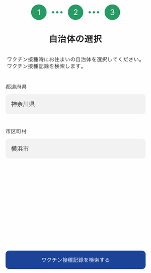 ⑦お住まいの自治体を登録、ワクチン接種記録を検索する