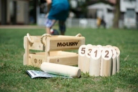 フィンランド発祥のスポーツで、木の棒(モルック)を投げて木製のピンを倒しながら、50点ピッタリを目指すものです。緻密な戦略を必要とする奥深さや投げる度に戦況が変化する面白さが魅力です!