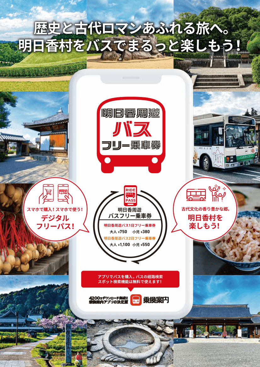 バスでゆったり明日香村を楽しむ 「明日香周遊バス1日/2日フリー乗車券」をモバイルで販売開始